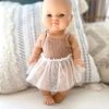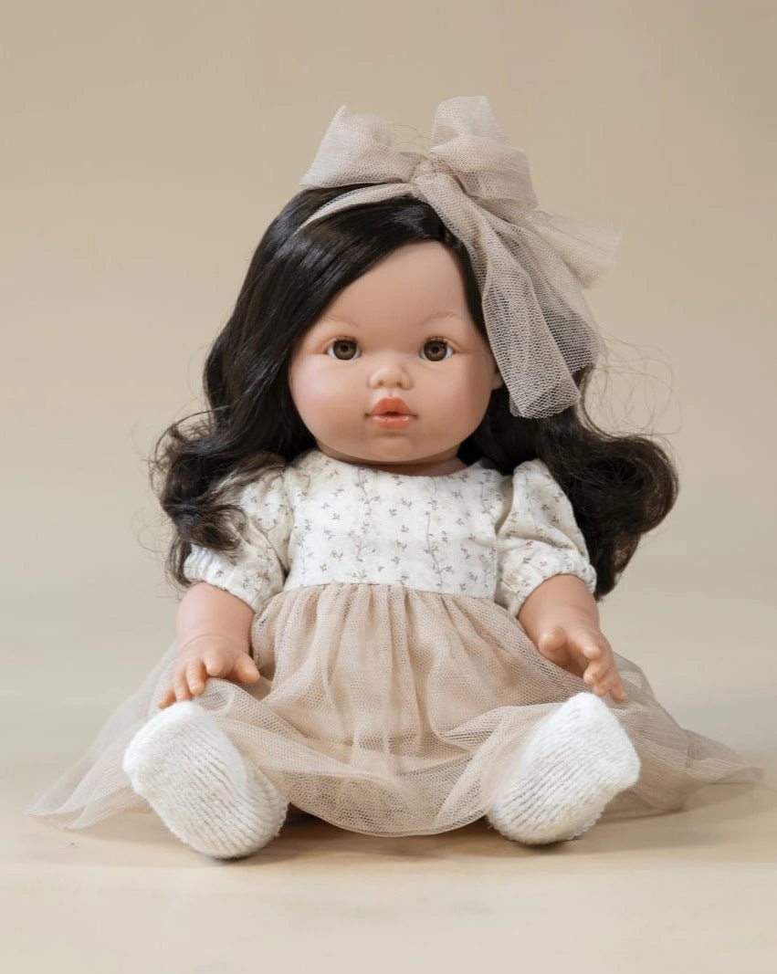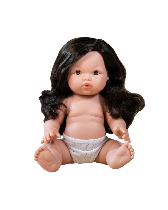 Introducing Mini Colettos, a diverse line of anatomically correct newborn dolls, artisan-made in Spain with thoughtfulness, care and exceptional attention to detail. Alaska is a newborn female doll with long dark brown hair and brown eyes. Playing with dolls and doll accessories is proven to help children develop empathy and compassion, and can help them exercise fine motor skills.