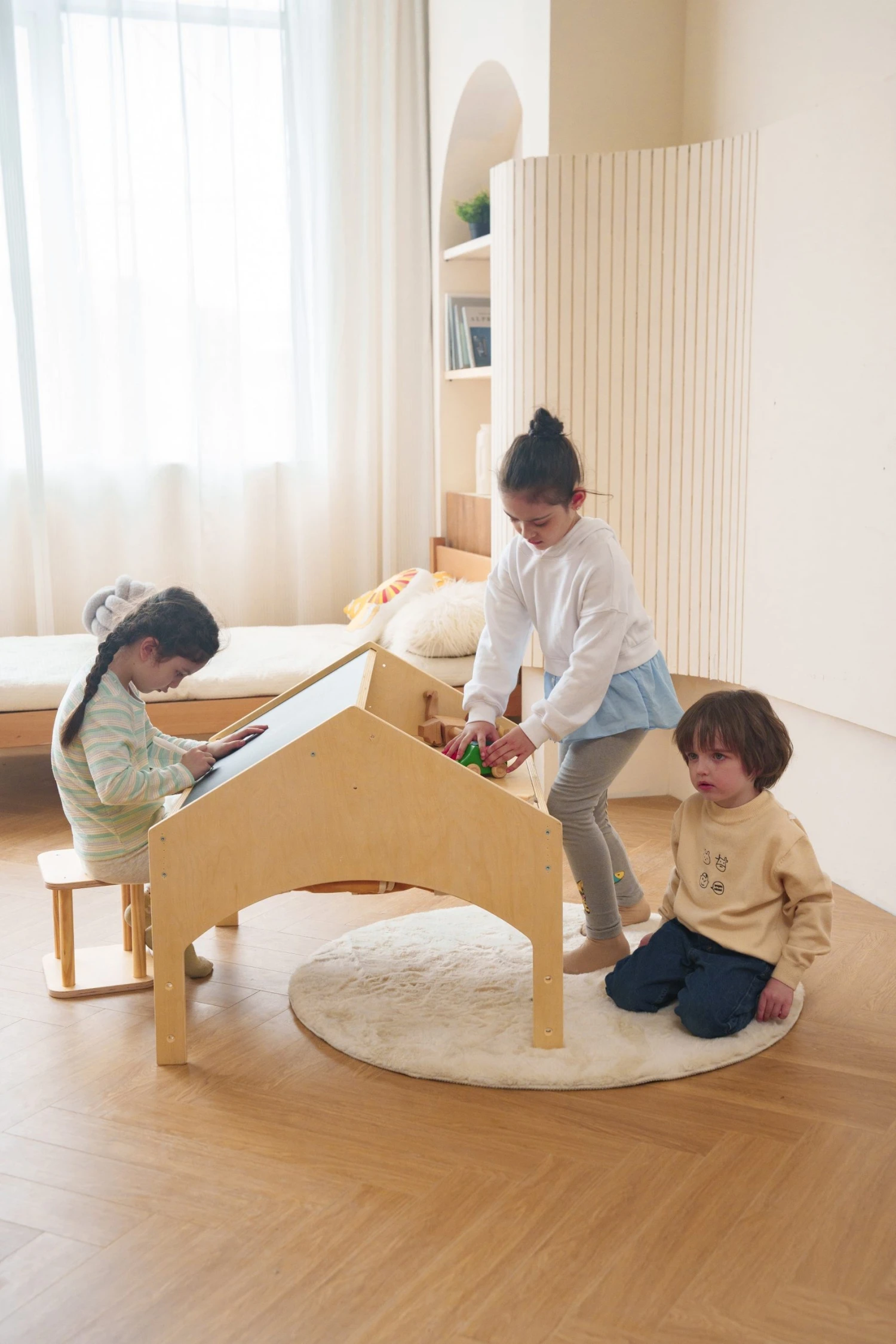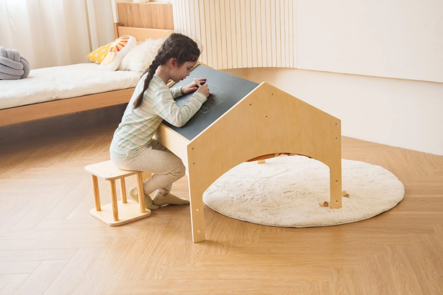 This will keep your kids entertained for days. A tent to play in, a chalkboard to scribble on, and a desk for all other activities.
