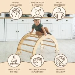 Introducing the Montessori Climbing Arch – an ideal addition to your child’s playroom that promotes physical development and imaginative play. Crafted with safety and development in mind, this versatile toy seamlessly transforms from a climbing arch into a rocker. Designed to support and strengthen your childβs limbs through the Montessori approach, this climbing frame is suitable for children aged from 1 to 6-7 years old.