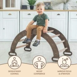 Introducing the Montessori Climbing Arch – an ideal addition to your child’s playroom that promotes physical development and imaginative play. Crafted with safety and development in mind, this versatile toy seamlessly transforms from a climbing arch into a rocker. Designed to support and strengthen your childβs limbs through the Montessori approach, this climbing frame is suitable for children aged from 1 to 6-7 years old.