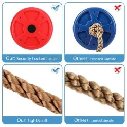 This Climbing Rope with Disc Swing by Great Playthings provides hours of outdoor fun for kids. It’s a great balance builder for teaching children how to balance and build muscle. It’s designed for outdoor play and will last a long time when used properly. We recommend storing indoors when not in use to extend it’s life.