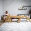 Also called an “Amish puzzle ball”, it was popularized by Montessori educators. Our balls do not come apart, so are not actually a puzzle, but your baby will examine it as if it were a puzzle. Sensory Clutch Balls are used in many ways with babies from 3 months of age – attach a strap and hang above your baby from 3 months of age to promote kicking. At about 5 months your baby will begin to move the ball with her hands and begin to try and clutch it. The segments make it easier for a baby to clutch than a regular ball. And when it drops, it won’t roll far. It’s the perfect first ball for babies, and is a popular favorite baby toy.