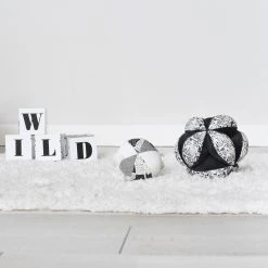 Our sensory Clutch Ball toy is designed to delight your baby’s developing senses. Signature high-contrast hand painted graphics grab baby’s attention visually, while varied textures provide tactile stimulation. Its beautiful organic shell fabrics and Nordic pattern make it the perfect keepsake gift.