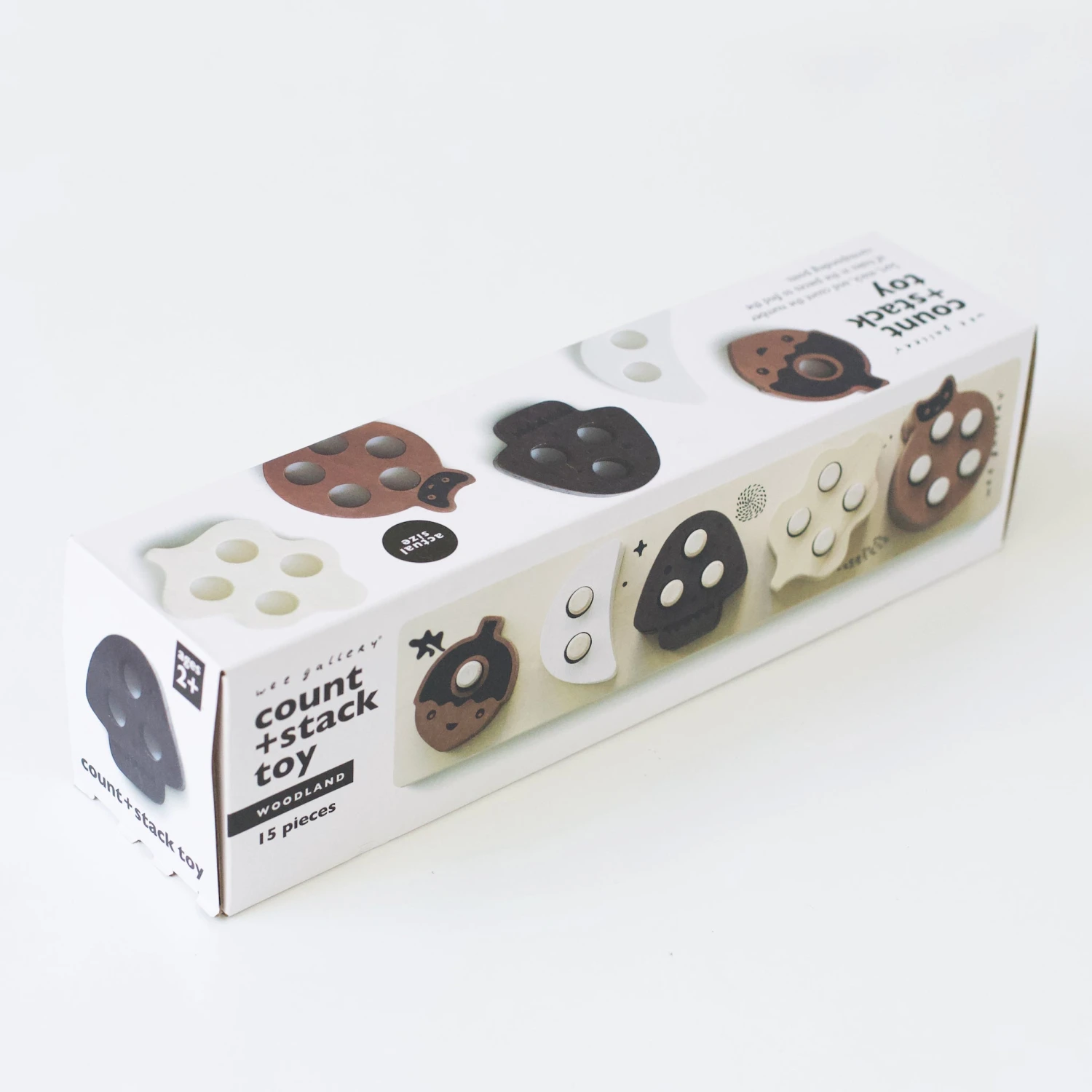 With the Count + Stack Toy, kids can sort, stack, and count the number of holes in the pieces to find the corresponding posts. To add to the sorting and counting concepts, each shape has the same number of pieces as the number of holes that you count — one acorn, two moons, three mushrooms, four leaves, and five ladybugs! Young children can work on motor skills and spatial reasoning (an early math skill) while playing with this adorable woodland toy made of beautiful quality wood. Boxed and ready to make the perfect gifts for toddlers or preschool children.