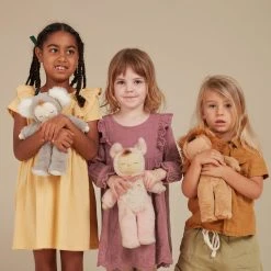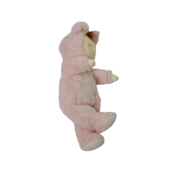 Piggy Pickle is posable, made from the plushest outer and features the sweetest embroidered face with a little tuft of hair. Each Cozy Dinkum wears a non-removable suit with two soft furry ears and a rainbow right over their heart.