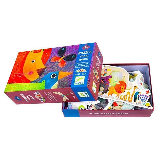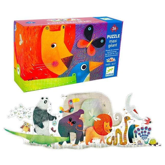 Embark on a joyful jigsaw puzzle adventure with the 36-Piece Animal Parade Giant Floor Puzzle.