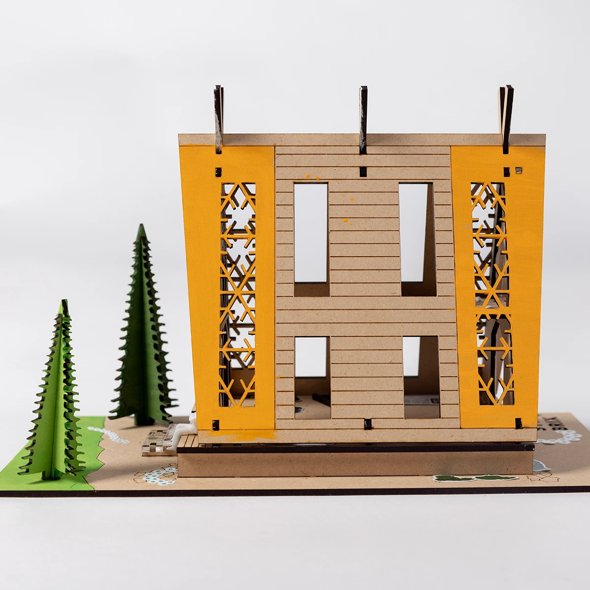 - Pre-cut, interlocking wood for evergreen trees