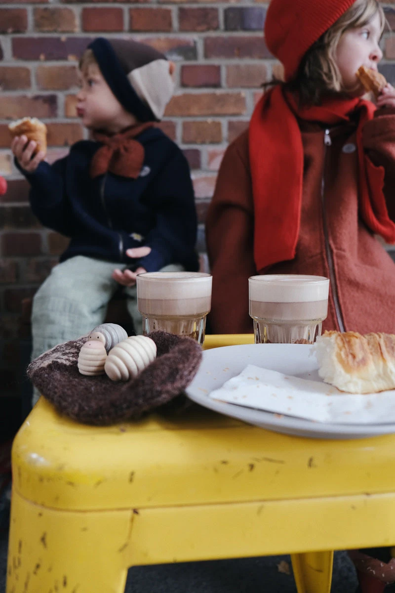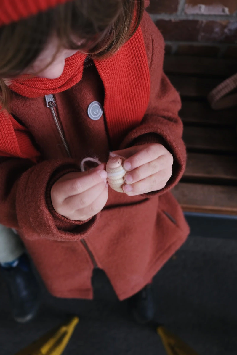 The dyes are based on water and non-toxic: they allow the grain of the wood to show through, bringing children into closer contact with nature. The finishes are made with waxes and oils of vegetable origin. The oils can have a strong aroma at first, but it loses it within a few days. Each piece is unique, each one is painted by hand. And natural imperfections are recognized as being part of the natural wood: it is beautiful and makes the material even more valuable.