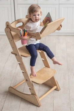 Crafted from eco-friendly birch plywood, the growing chair promises sturdiness without compromising on safety. Each wooden surface has been diligently sanded and polished for a flawless, splinter-free finish. We emphasize child safety, ensuring every part of this chair is treated with our special blend of oils and waxes. This treatment ensures its adaptability for both indoor and controlled outdoor settings, although we recommend avoiding areas of high humidity. Designed with utmost precision, this chair is suitable for children aged from 1 to 6-7 years old.