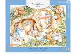 Peter Rabbit and his family harvest, eat, and snuggle in their home-sweet burrow.