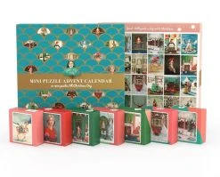 This 13″ × 13.75″ outer box comes filled with 24 individually boxed 7″ × 9″ 100 piece MINI Puzzles.