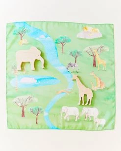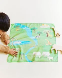 Safari Playmaps are 21×21-inch squares made from gorgeous, heavyweight (8 momme) 100% pure mulberry silk, hand-painted, and then printed with non-toxic, earth-friendly dyes.