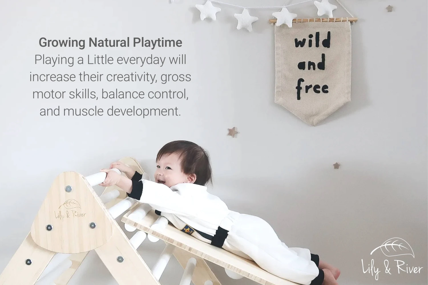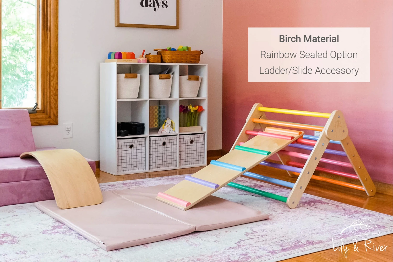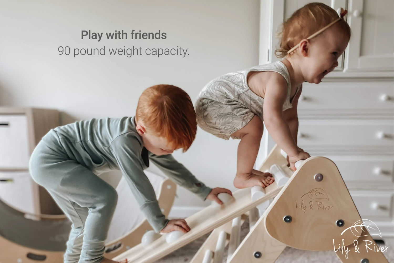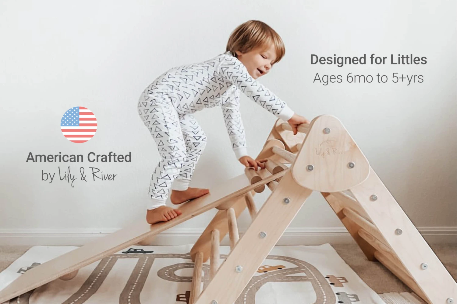 Voted best foldable playground for climbing, sliding, bridges, forts, and more. As your child grows, raise your accessory to advance to the next level. Little Climber is designed to enhance your children’s motor skill development, balance control, creativity, and so much more. Climber recommended at 6 months, Ladder/Slide at 8 months, and Rockwall/Slide at 18 months.