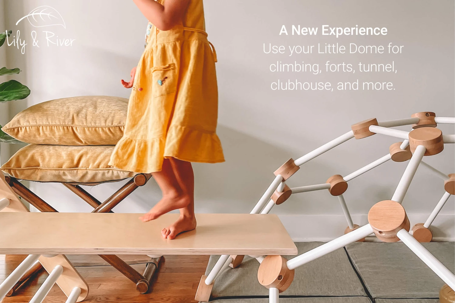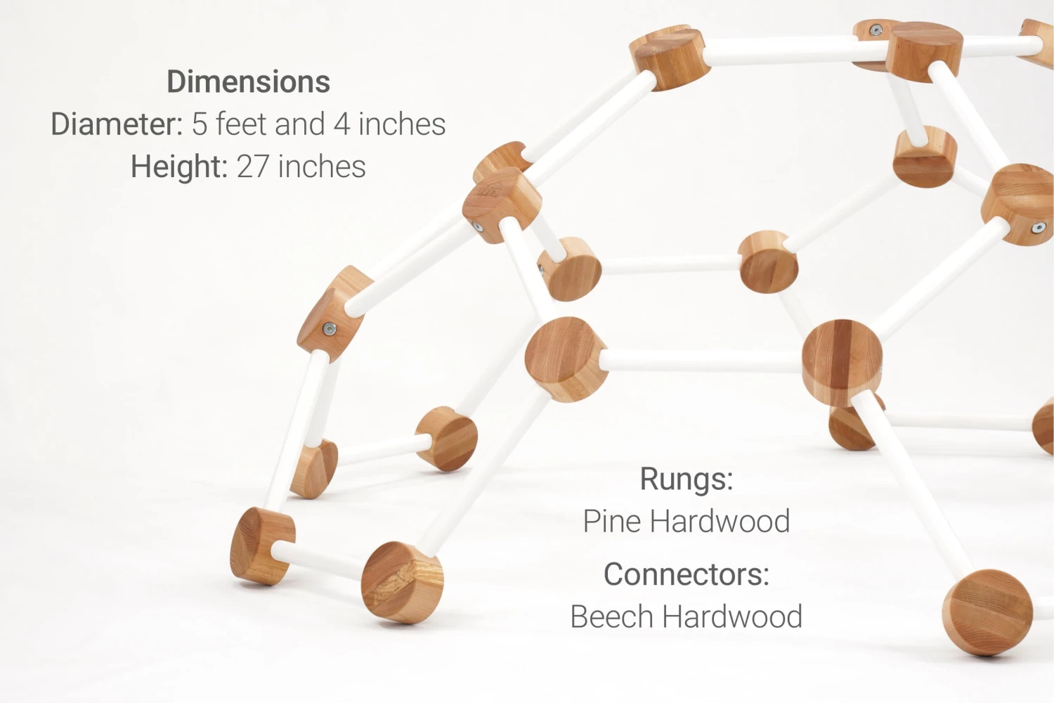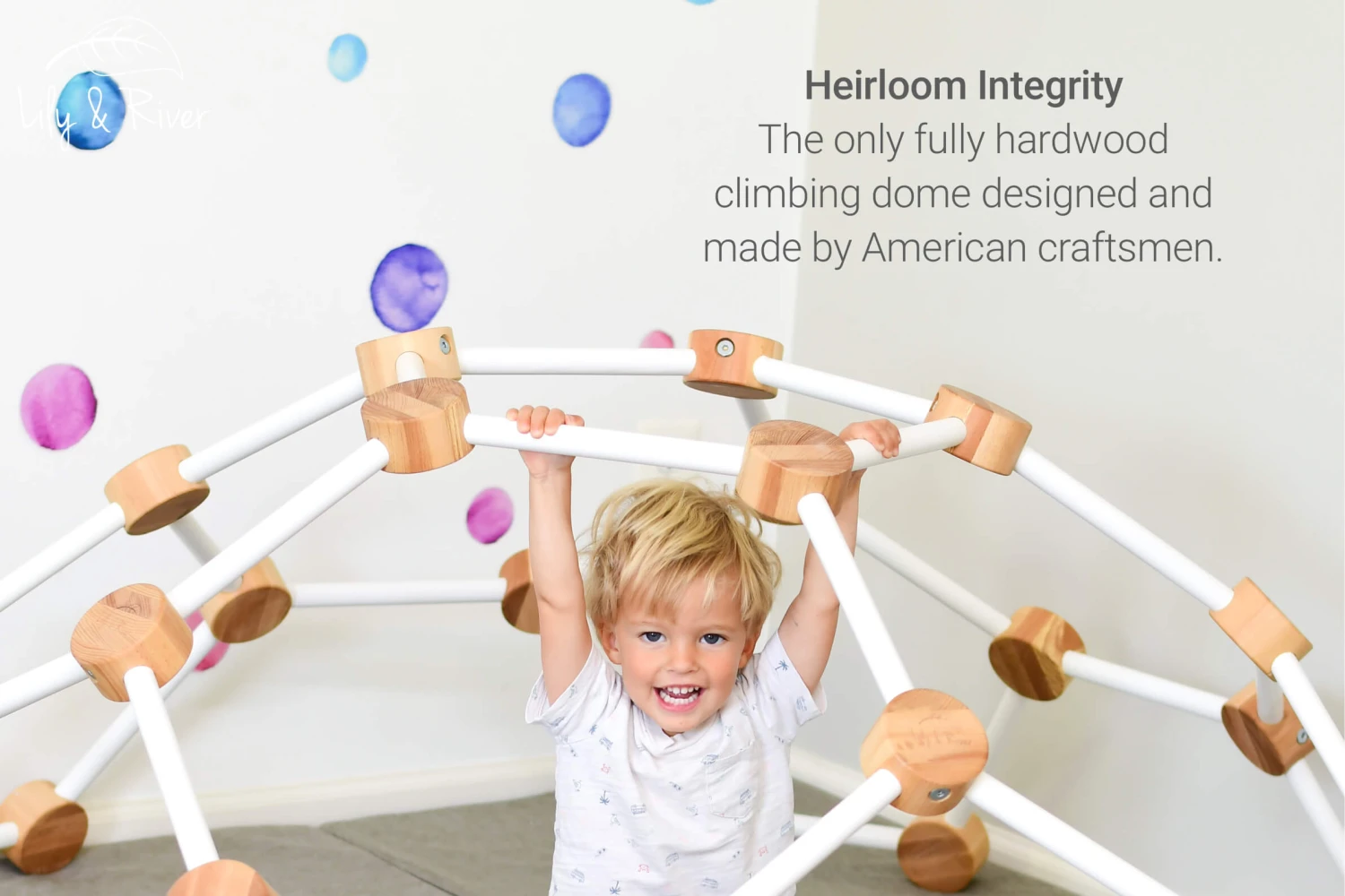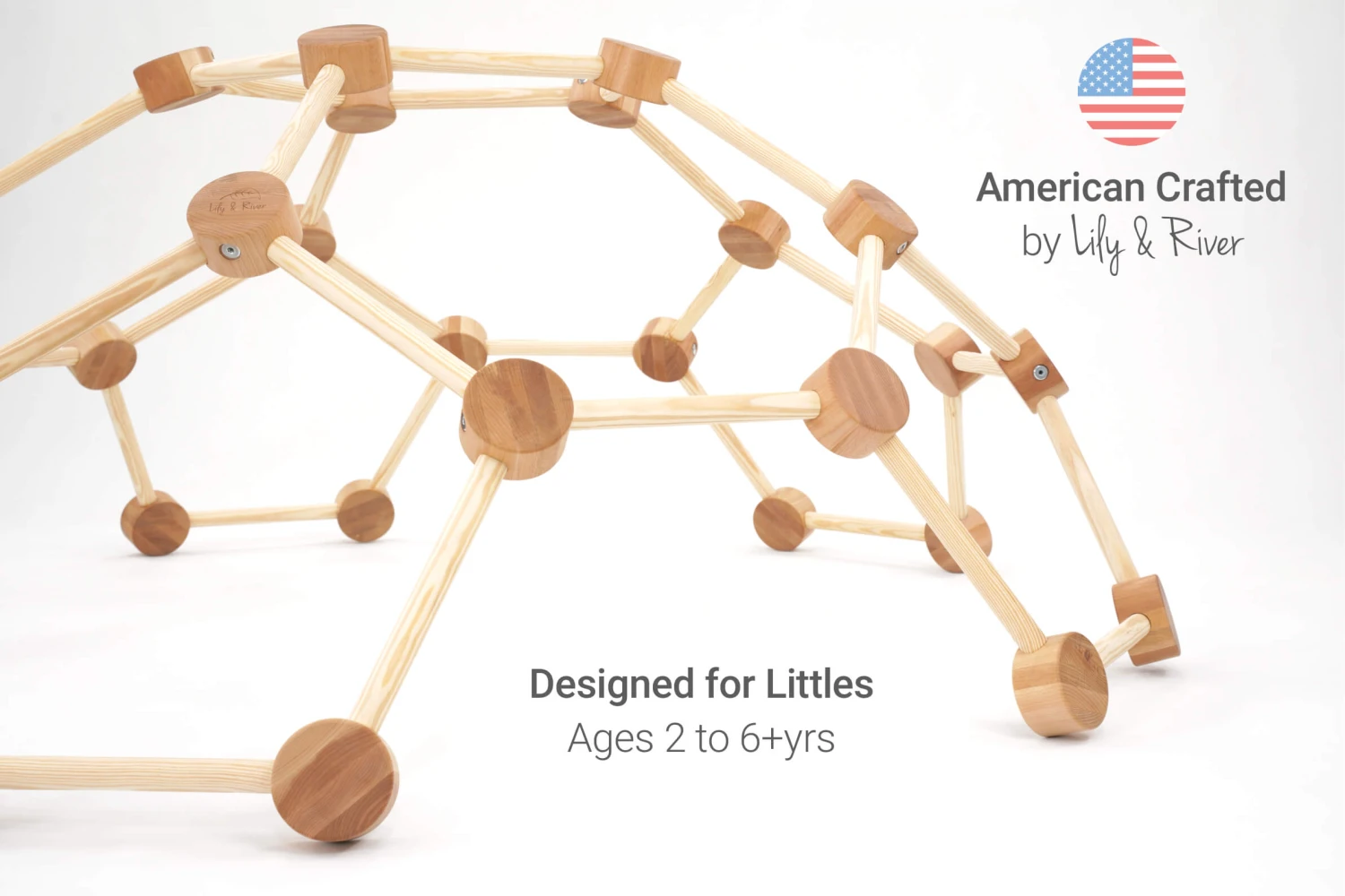 Little Dome is the ultimate playtime toy that provides the best play space for kids that love to climb. Our new indoor wooden climbing dome is the smart home playground designed to enhance your child’s motor skill development, balance control, creativity, and so much more! Little Dome can quickly become a summit adventure on Mt. Everest, a cool cave to hide in, or indoor playground monkey bars. Little Dome is handcrafted with premium material and is designed for Littles ages 2-6 years. Simple assembly required. *Made for Indoor Use Only*