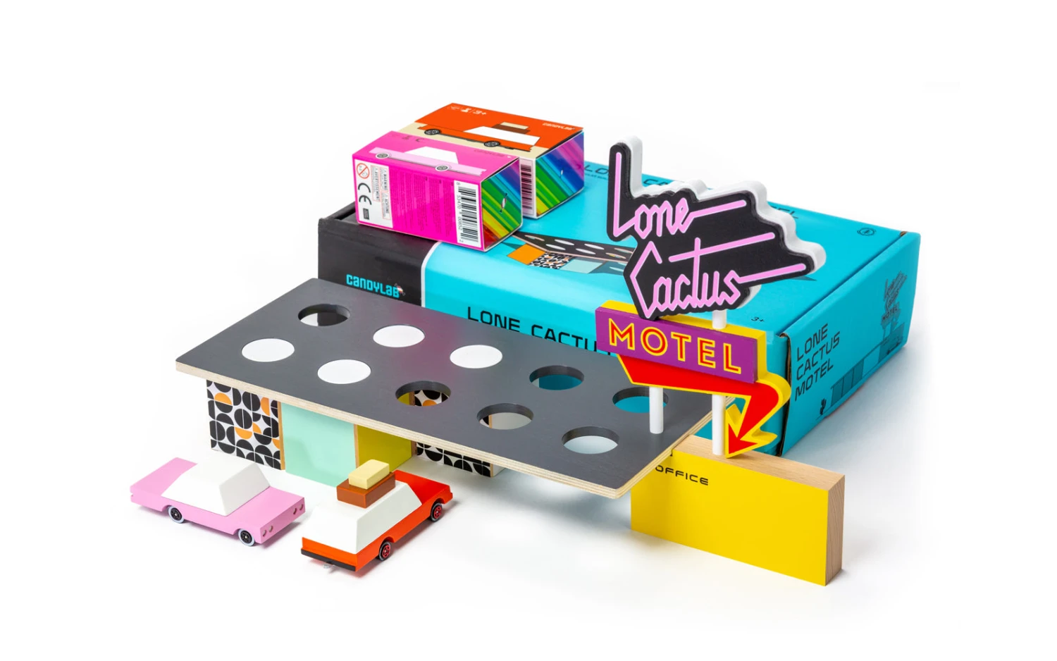 Remember “what happens at the Lone Cactus Motel – stays at the Lone Cactus Motel”. Introducing our new CANDYCAR compatible set. Decked out in mid-century patterns, free wifi, and fresh coffee – you might not want to leave after you check-in.
