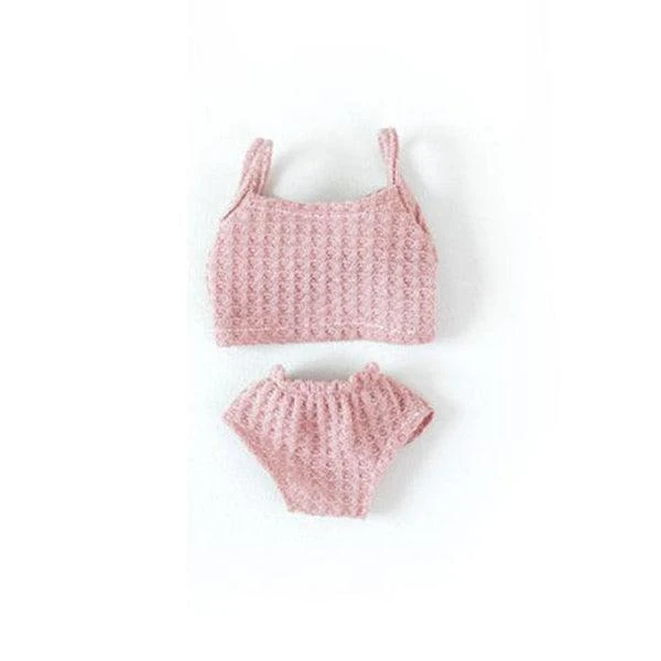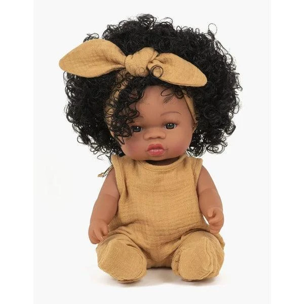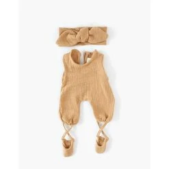 Fallenis one of The Loretasandrefers to Autumn. Her ochre yellow dollsuit, shoes and hairband are handmade from organic cotton. Under her beautiful outfit she wears a pink shirt and underwear.