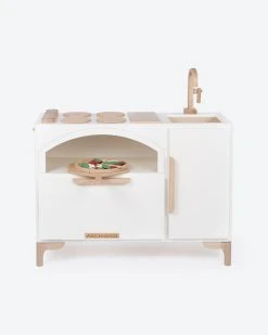 Crafted from sustainable wood and finished with non-toxic paints and stains, the Milton & Goose Luca Play Kitchen prioritizes safety and durability. The sturdy construction ensures long-lasting play and allows multiple children to enjoy cooking adventures together.