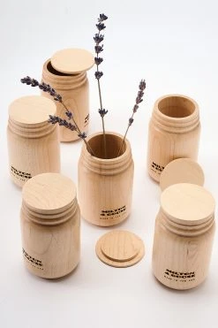 The cutest little play kitchen jars around. These pint-sized wooden mason jars with removable lids are the ultimate kitchen staple. A place to gather those little play utensils or stash some pretend pickles, our M&G Jars are sure to delight. Set includes two jars with removable lids.