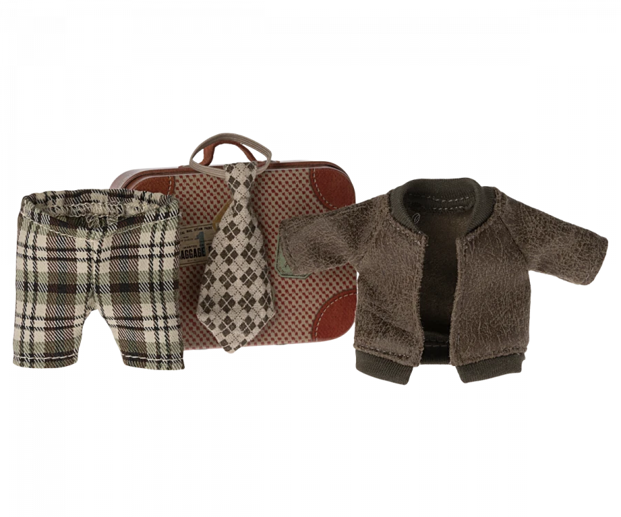 Dress up grandpa mouse in this beautiful set of clothes. It is packed in a small metal suitcase which makes it easy to bring on a holiday.