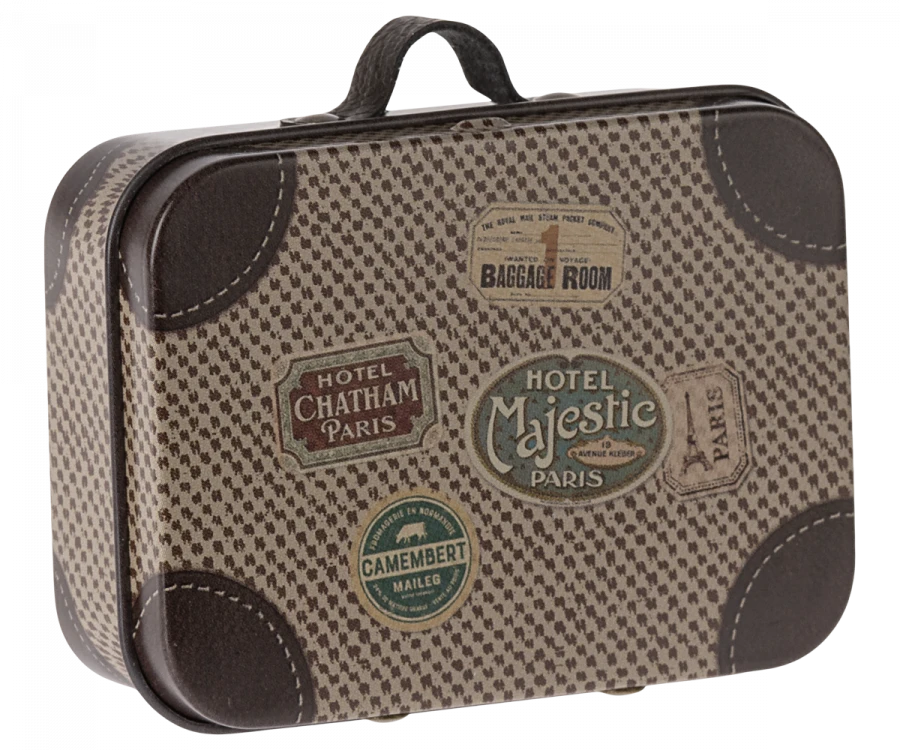 This small metal suitcase with colorful illustrations and beautiful details can be used for any occasion: small gifts, storage of small items or for mice and small bunnies to bring their belongings on the go.