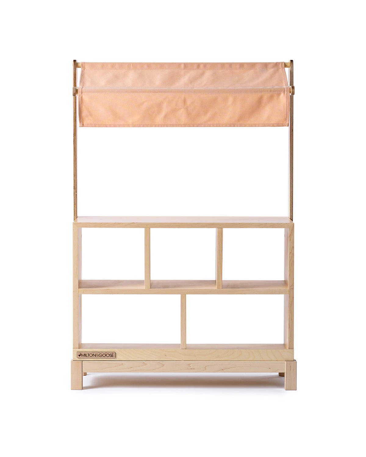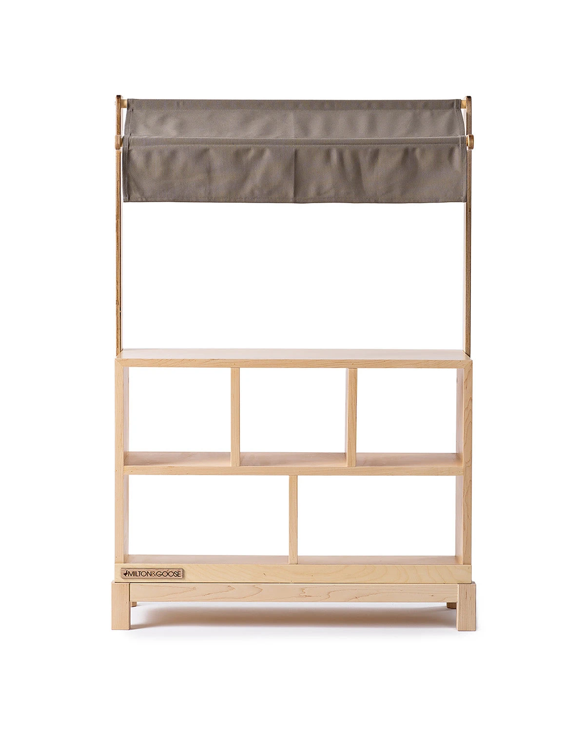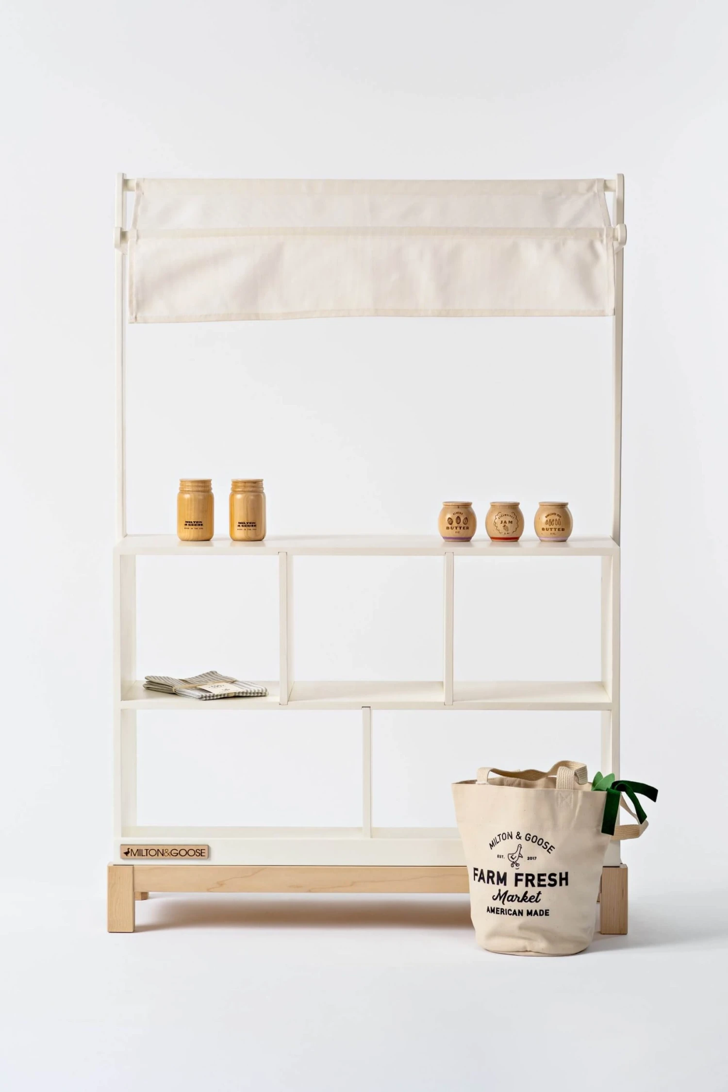 Open for business! Our sturdy, handcrafted wooden Market Stand is the ultimate canvas for your budding proprietor to set up shop. Whether it’s a farmer’s market, flower shop, ice cream joint, or bakery, it’s the perfect opportunity to practice organizational skills, social interaction, math, negotiating, and more. The timeless design will delight for years to come.