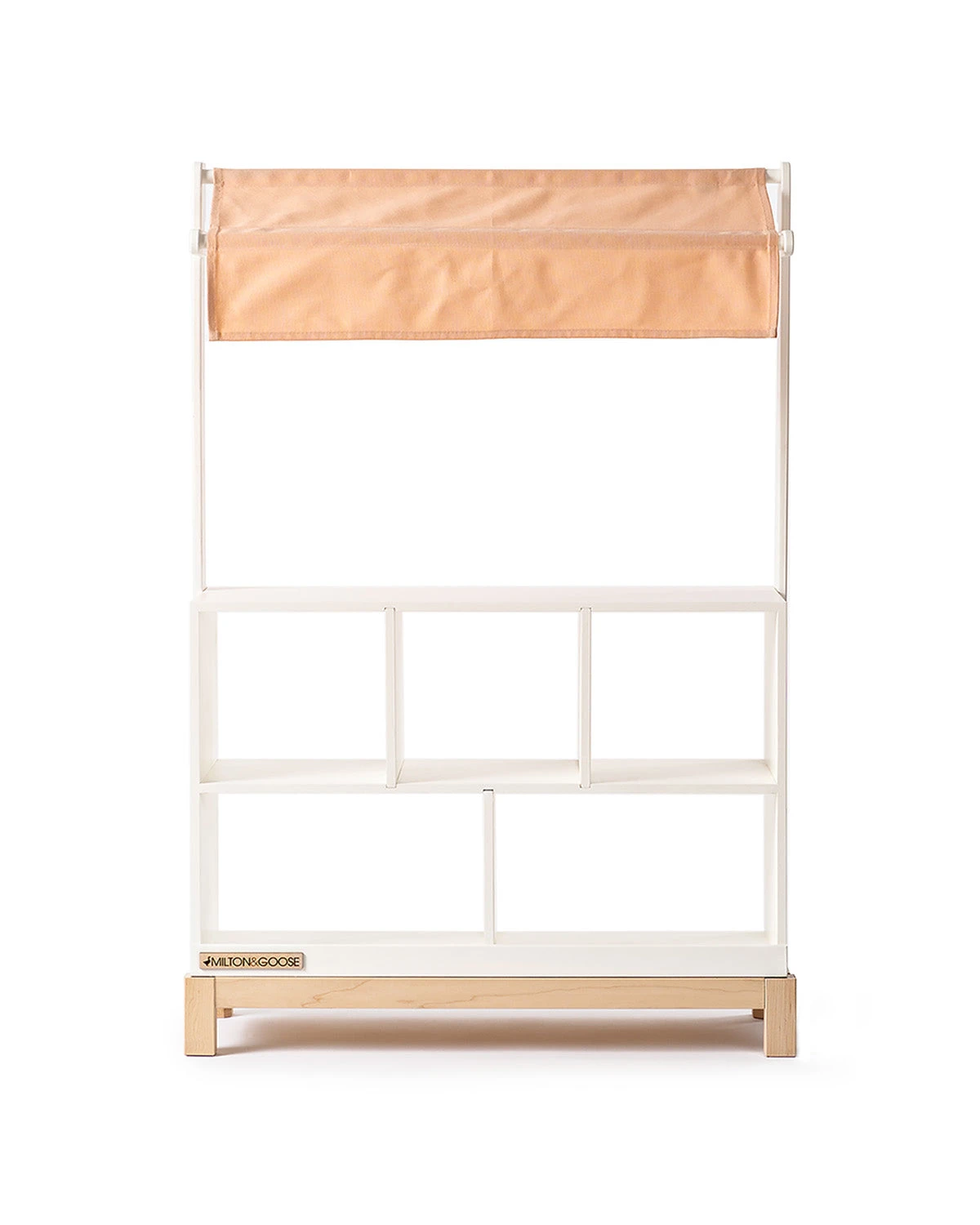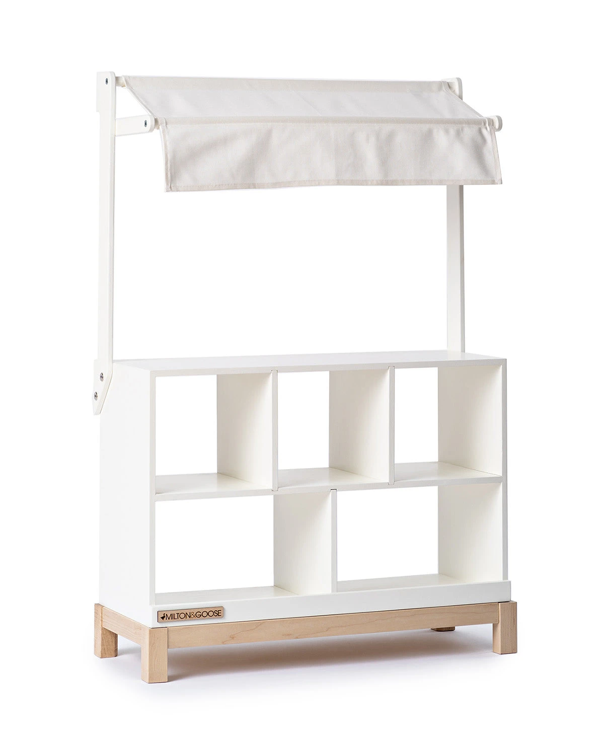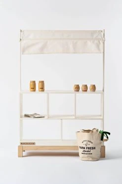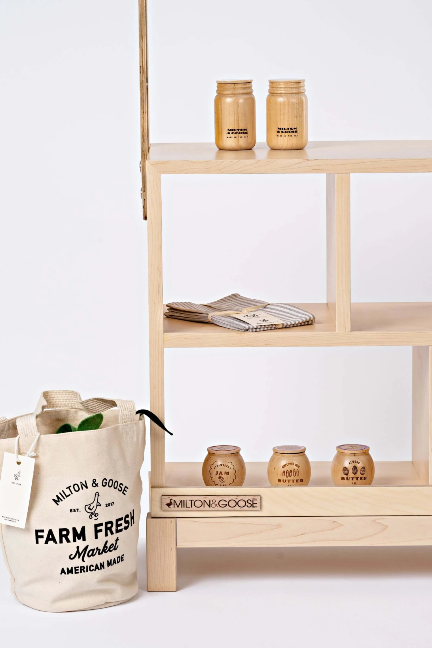 Open for business! Our sturdy, handcrafted wooden Market Stand is the ultimate canvas for your budding proprietor to set up shop. Whether it’s a farmer’s market, flower shop, ice cream joint, or bakery, it’s the perfect opportunity to practice organizational skills, social interaction, math, negotiating, and more. The timeless design will delight for years to come.
