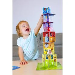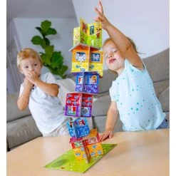 Rhino Hero Junior is a superhero in training who aims high. In three different games, the children practice their fine motor skills, work on a basic understanding of numbers and quantities, and also train their memories. Floor by floor, the fun and learning curve just gets steeper and steeper, until the heroic rhino reaches the top and the children win together.