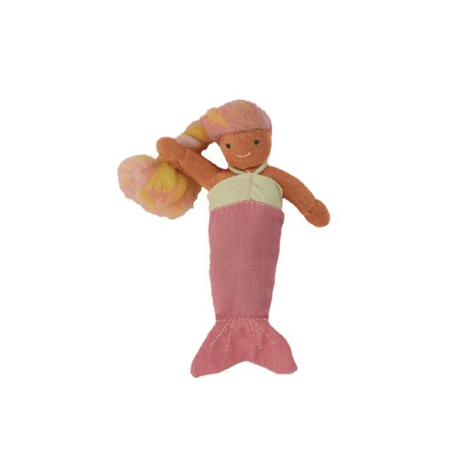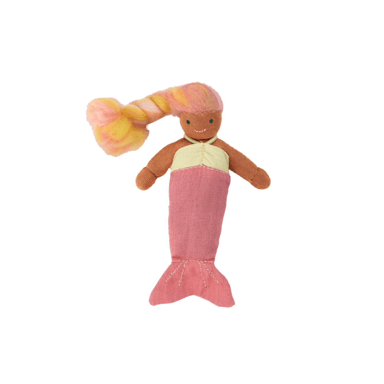 Handmade & fully posable Mermaid Isla is the perfect size to fit in the palm of a small hand or hideaway in a little pocket. Isla’s Mermaid tail is removable, and she can fit into regular Holdie ™ Folk clothing too!