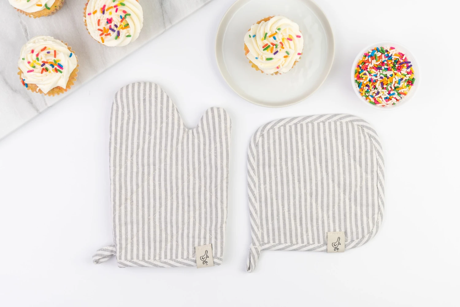 When their pretend meal is ready, your little chef will be prepared with their very own play oven mitt set. An essential accessory for any little chef, our oven mitt set is perfectly sized for little hands. The set features one oven mitt and one hot pad in matching colors.