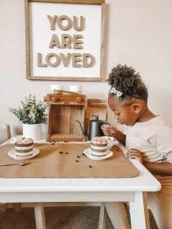 Frothaccino mummy? Your little Barista will have so much fun preparing fantasy make-believe-accinos side-by-side with you. Pretend play at its best.