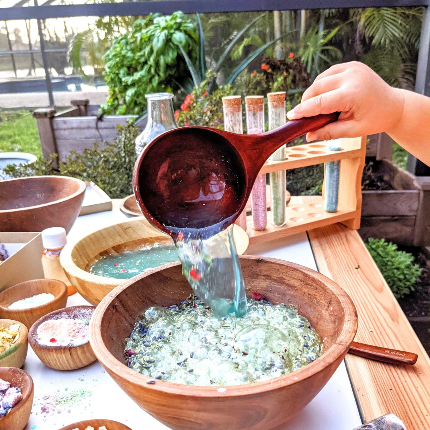 Mezclando y vertiendo, los niños se diviertes al ver la poción burbujear, cambiar de color y brillar.La alegría y celebración de explorar llenara sus corazones de magia y gratitud.