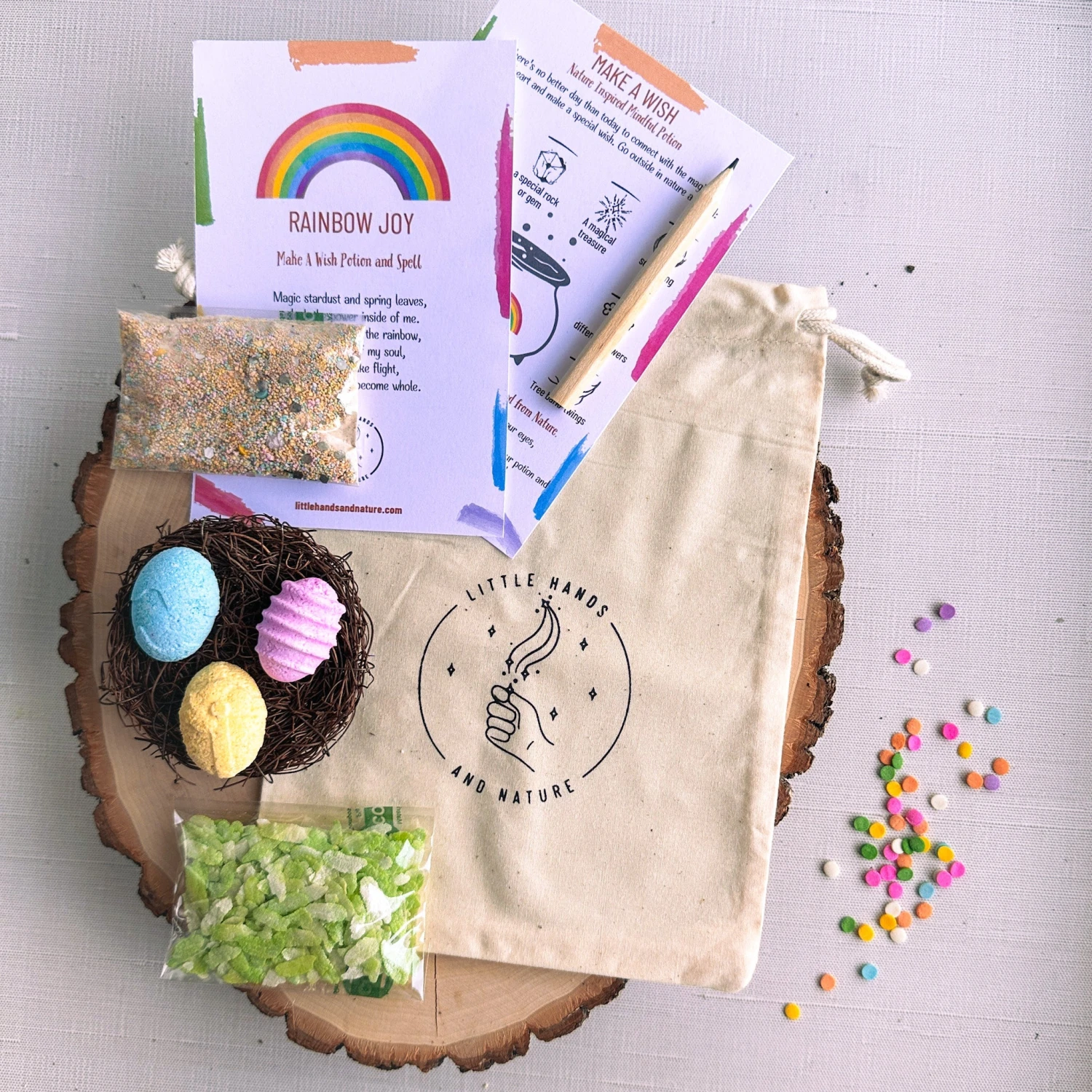Our nature-inspired, mindfulness-enhanced kit inspires children to embark on a nature scavenger hunt. They gather natural ingredients, make heartfelt wishes, and playful magical potions. This engaging activity sparks joy and curiosity, while also nurturing emotional awareness and connection.