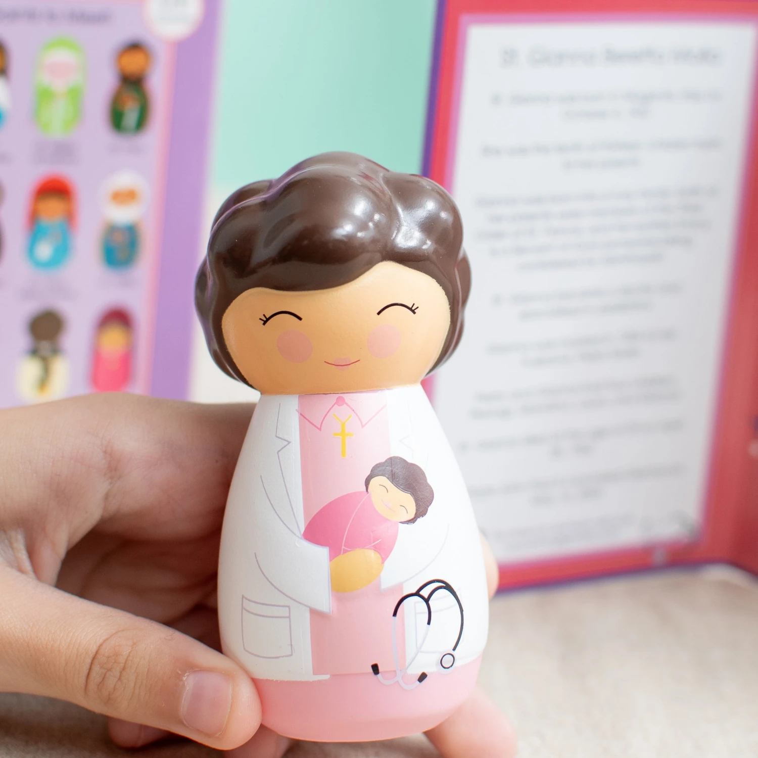 Teach your children about selfless love! Introduce the story of St. Gianna using the educational insert in the box. Encourage children to consider what it means to trust God, even when it’s hard and risky. Great for opening discussions about love, vocation (St. Gianna had many vocations, wife, mother and doctor), heaven being our ultimate goal, trusting God, being pro-life, and putting another person before yourself.