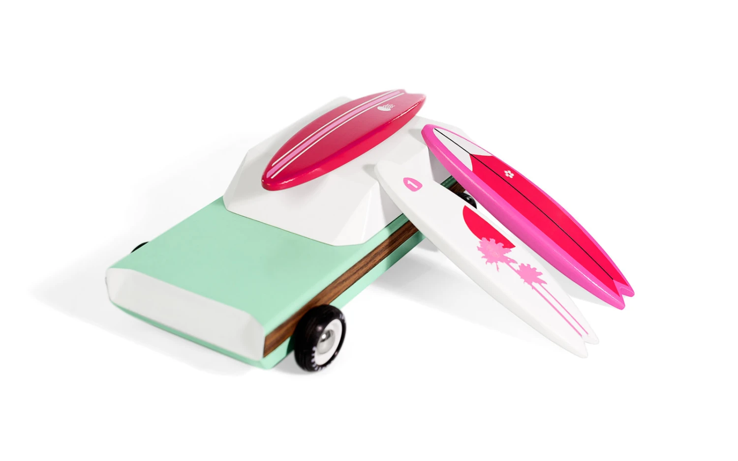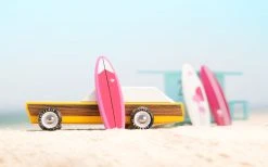 You get three unique styles in this pack of solid beech surfboards. With an embedded magnet in each, put one on your Woodie, one in the back of your Longhorn, and one on the fridge.