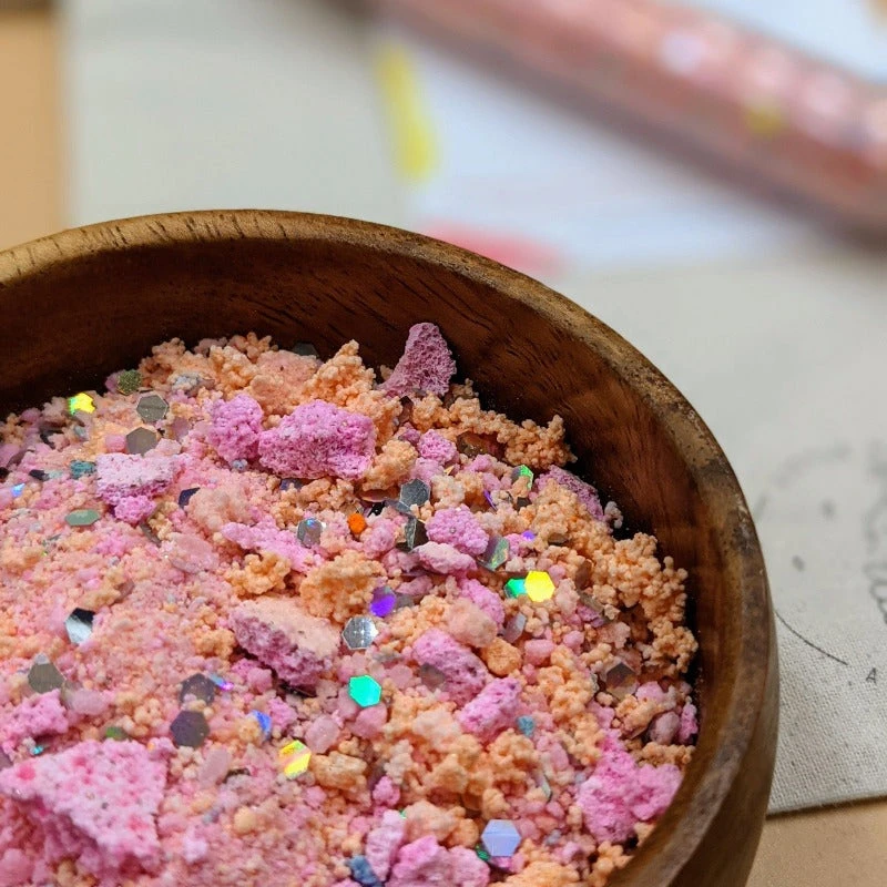 Stardust Sunset – I Am Calm, I Am Love, a mindful and STEM-focused potion kit for kids that blends sensory play with empowering positive affirmations. Our signature Stardust ingredient creates a dazzling show of sparks and fizz upon contact with water, making it an ideal sensory toy and addition to any potion or water-based play. Just add water!