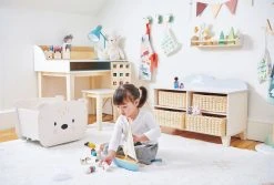 Ahoy there! A traditional solid wood sailing boat evocative of summer time seascapes. Best friends Bubble and Squeak are on top deck, enjoying the views. With 2 fabric sails and some stylish bunting, these 2 friends have the coolest boat in the harbor. The boat cannot be put in water.