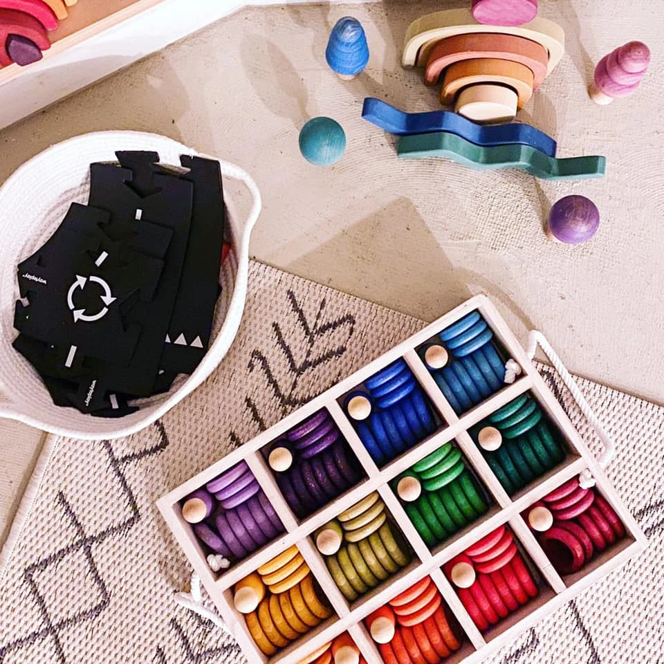 This wooden sorting tray comes 2 handles and 12 compartments, ideal for the Grapat Nins Carla Set. It’s also great for showcasing your nature walk finds or beloved possessions.
