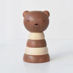 Bear Wood Stacker: Recommended for ages 18 months +. Measures 4.75 inches tall. Made of natural Rubberwood with a child-safe finish.